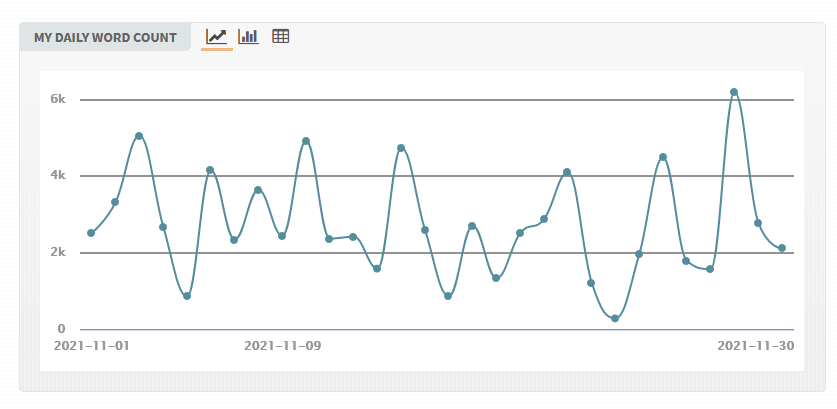 Long time, no see! It’s been over a month since I last posted because I’ve been dedicating every second I have to NaNoWriMo, and now here I am again to tell you how it all went. So, how did things go during NaNoWriMo 2021? Well, things went phenomenally well because my final word count is 82,773. I’ll be brutally honest and say I thought it’d be a mad dash towards the end because work takes up an incredible amount of time and makes days off a necessity for recuperation, sometimes meaning I’m too exhausted to focus on creating words and concepts out of thin air.